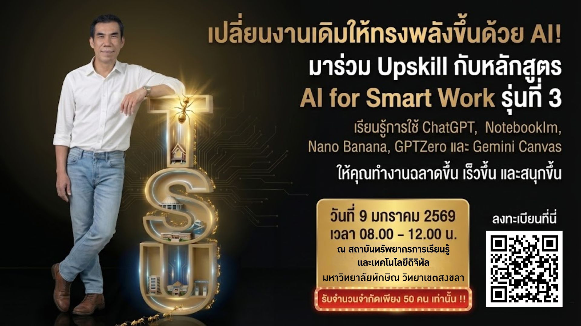 บุคลากร #วิทยาเขตสงขลา ห้ามพลาด! กับคอร์ส AI for Smart Work รุ่นที่ 3