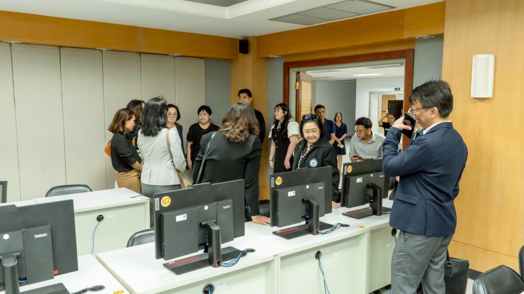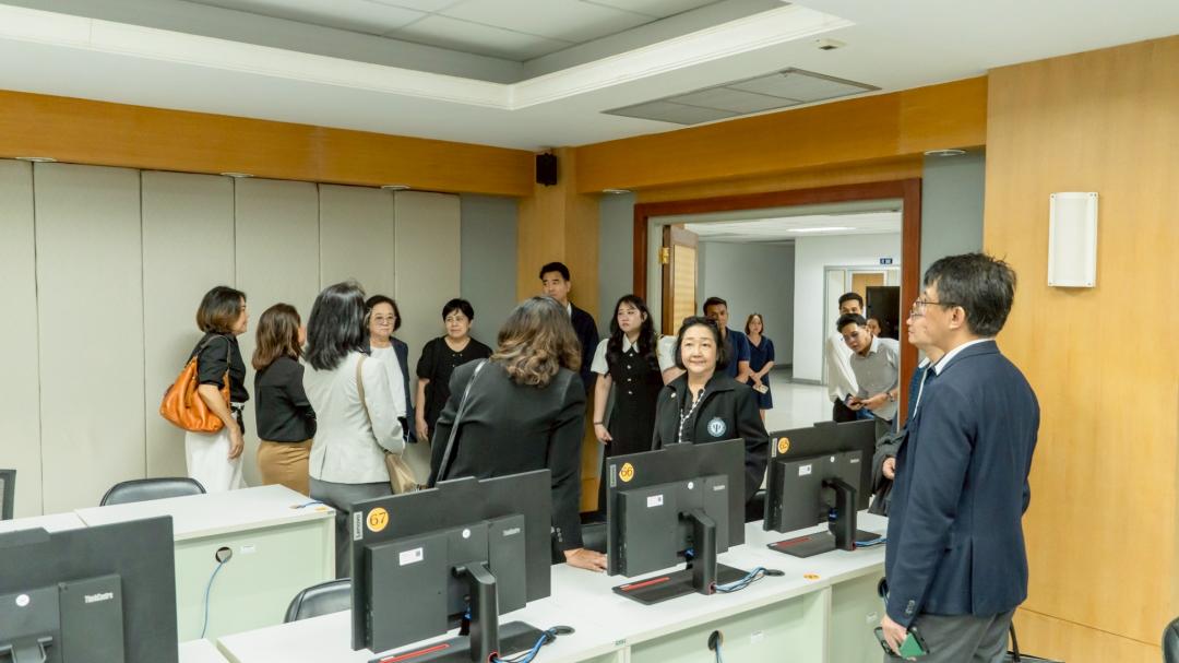 ในการนี้ อ.ดร.คณิดา สินใหม ผู้อำนวยการสถาบันทรัพยากรการเรียนรู้และเทคโนโลยีดิจิทัล นำคณะอนุกรรมการฯ เยี่ยมชมความพร้อมของสถานที่ ทรัพยากรสารสนเทศ และเทคโนโลยีดิจิทัลที่มหาวิทยาลัยจัดเตรียมไว้ เพื่อรองรับการจัดการเรียนการสอนในสาขาวิชาจิตวิทยาคลินิกอย่างมีประสิทธิภาพ ครอบคลุมทั้งด้านห้องเรียน เทคโนโลยีสนับสนุนการเรียนรู้ และแหล่งทรัพยากรสารสนเทศที่ทันสมัย