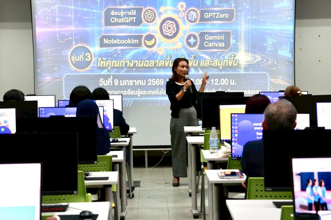 สถาบันทรัพยากรการเรียนรู้และเทคโนโลยีดิจิทัล จัดอบรมโครงการ “AI for Smart Work : ปรับงานเดิม เติมพลังใหม่ด้วย AI” ครั้งที่ 3 ณ ห้อง C207 สถาบันทรัพยากรการเรียนรู้และเทคโนโลยีดิจิทัล มหาวิทยาลัยทักษิณ วิทยาเขตสงขลา เพื่อพัฒนาความรู้และทักษะด้านการประยุกต์ใช้เทคโนโลยีปัญญาประดิษฐ์ในการทำงานของบุคลากรมหาวิทยาลัย