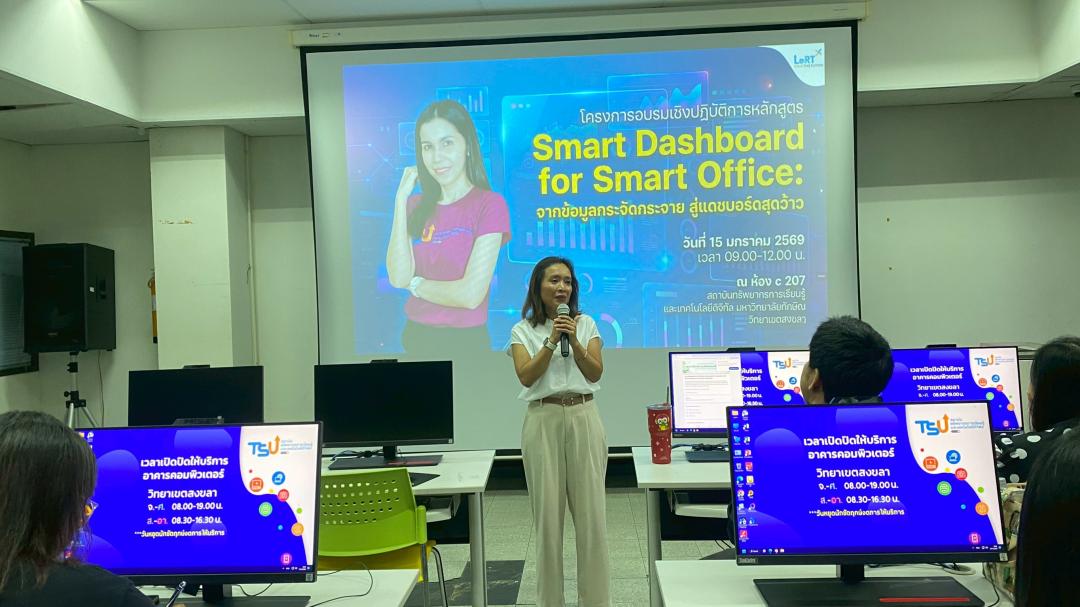 สถาบันทรัพยากรการเรียนรู้และเทคโนโลยีดิจิทัล จัดโครงการอบรมเชิงปฏิบัติการ หลักสูตร “Smart Dashboard for Smart Office: จากข้อมูลกระจัดกระจาย สู่แดชบอร์ดสุดว้าว” เพื่อส่งเสริมการเรียนรู้และการประยุกต์ใช้เทคโนโลยีใหม่ ๆ ในการพัฒนางานให้มีประสิทธิภาพมากยิ่งขึ้น โดยจัดอบรมในวันพฤหัสบดีที่ 15 มกราคม 2569 เวลา 09.00–12.00 น. ณ ห้อง C207 อาคารคอมพิวเตอร์ สถาบันทรัพยากรการเรียนรู้และเทคโนโลยีดิจิทัล วิทยาเขตสงขลา