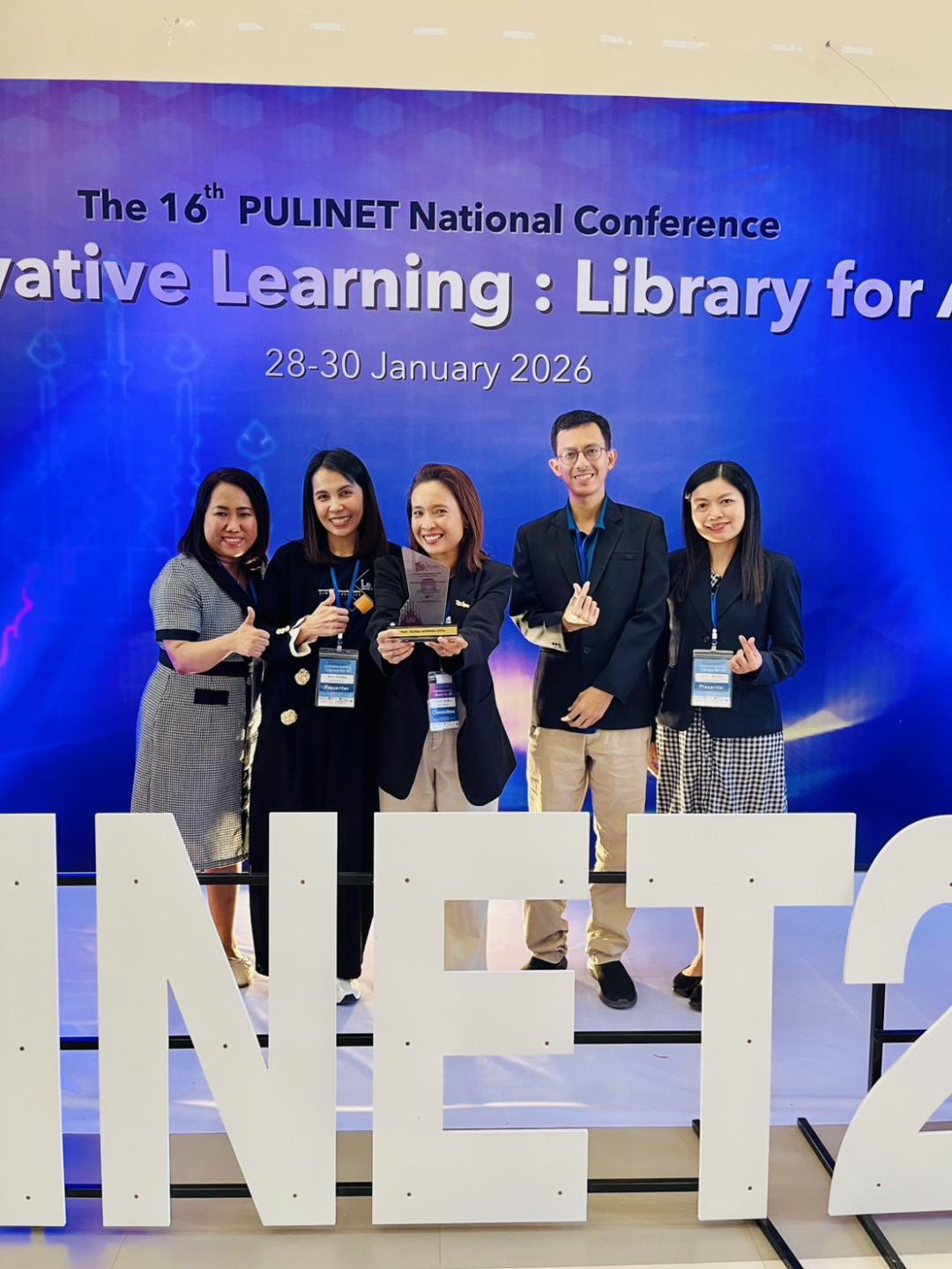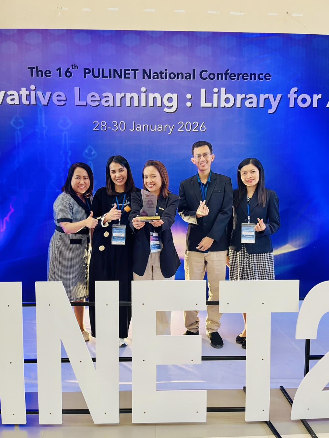 สถาบันทรัพยากรการเรียนรู้และเทคโนโลยีดิจิทัล มหาวิทยาลัยทักษิณ สร้างผลงานโดดเด่นบนเวทีการประชุมวิชาการระดับชาติ PULINET ครั้งที่ 16 (The 16th PULINET National Conference – PULINET 2026) ภายใต้แนวคิด “Innovative Learning : Library for ALL” ซึ่งจัดขึ้นระหว่างวันที่ 28 – 30 มกราคม 2569 ณ มหาวิทยาลัยพะเยา ด้วยการได้รับรางวัลกลุ่ม Showcase (SC) การนำเสนอแบบบรรยาย (Oral Presentation) ระดับดีเด่น