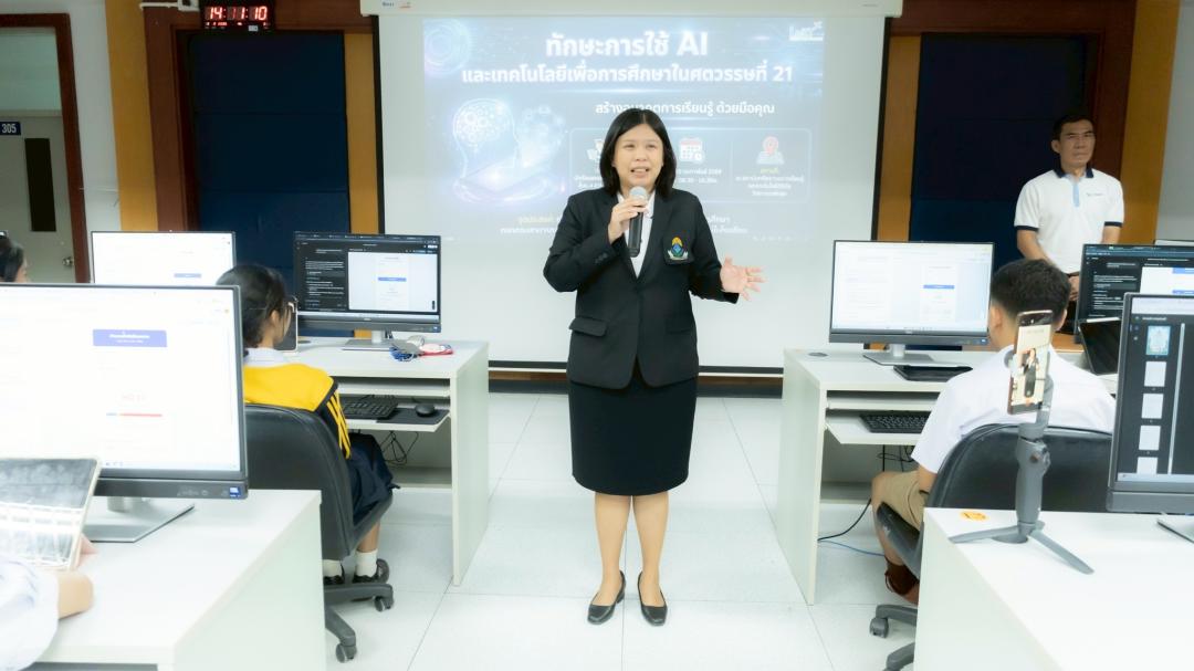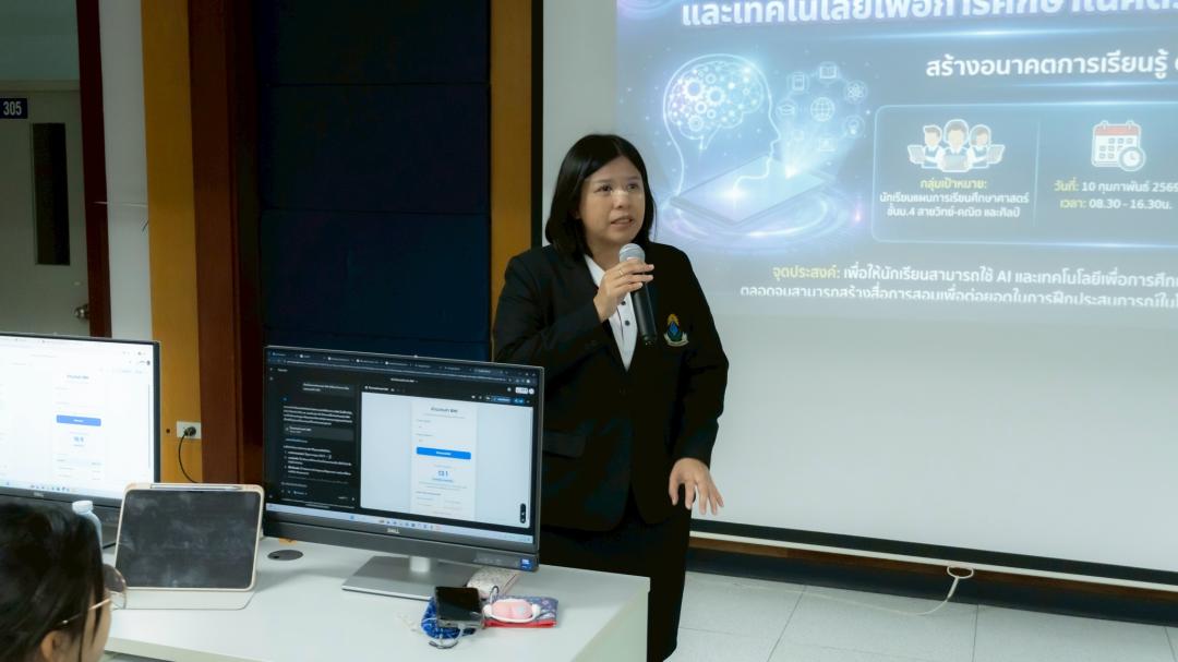 ภายในกิจกรรม นักเรียนได้เรียนรู้การประยุกต์ใช้เทคโนโลยีปัญญาประดิษฐ์ (Artificial Intelligence: AI) เพื่อสนับสนุนการเรียนรู้ในด้านต่าง ๆ เช่น การสืบค้นและวิเคราะห์ข้อมูล การสร้างสื่อการเรียนรู้ และการจัดการเรียนรู้ด้วยตนเอง ควบคู่กับการเสริมสร้างความเข้าใจด้านจริยธรรม ความปลอดภัยของข้อมูล และการใช้เทคโนโลยีอย่างเหมาะสม เพื่อลดความเสี่ยงจากการพึ่งพาเทคโนโลยีเกินความจำเป็น