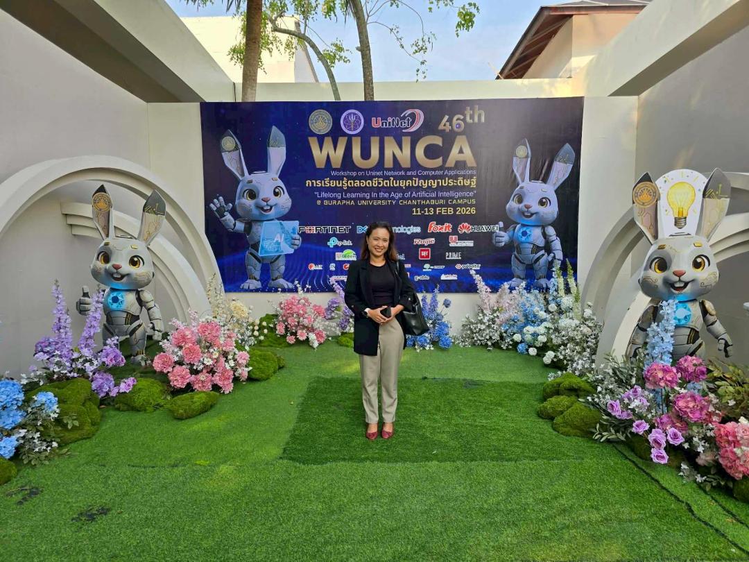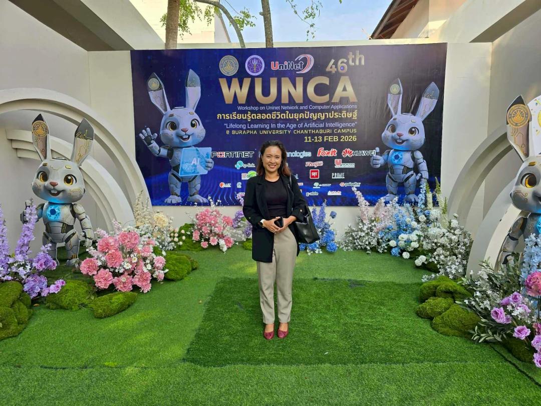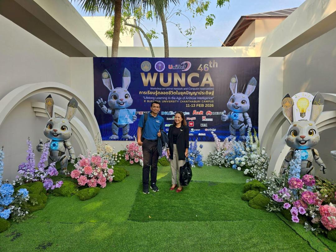 อาจารย์ ดร.คณิดา สินใหม ผู้อำนวยการสถาบันทรัพยากรการเรียนรู้และเทคโนโลยีดิจิทัล พร้อมด้วยนายญาณวุฒิ สุนทรกิจ นักวิชาการคอมพิวเตอร์ หัวหน้ากลุ่มภารกิจโครงสร้างพื้นฐานและความมั่นคงปลอดภัย เข้าร่วมงาน WUNCA ภายใต้แนวคิด “Lifelong Learning in the Age of Artificial Intelligence” ระหว่างวันที่ 11–13 กุมภาพันธ์ 2569 ณ มหาวิทยาลัยบูรพา วิทยาเขตจันทบุรี จังหวัดจันทบุรี