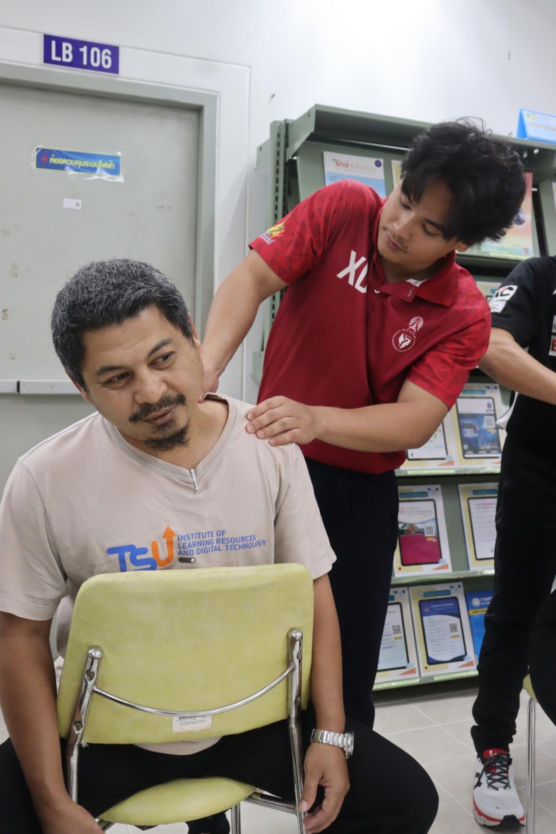 สถาบันทรัพยากรการเรียนรู้และเทคโนโลยีดิจิทัล มหาวิทยาลัยทักษิณ จัดกิจกรรม “Lert Happy Relax: นวดผ่อนคลาย” ณ ห้อง Co-Working Space ชั้น 1 (โซนห้องสมุด) วิทยาเขตพัทลุง โดยมีวัตถุประสงค์เพื่อส่งเสริมสุขภาพกายและสุขภาวะทางใจของบุคลากรในสถาบันฯ สร้างสมดุลระหว่างการทำงานและการดูแลตนเอง ภายใต้บรรยากาศที่อบอุ่นและเป็นกันเอง