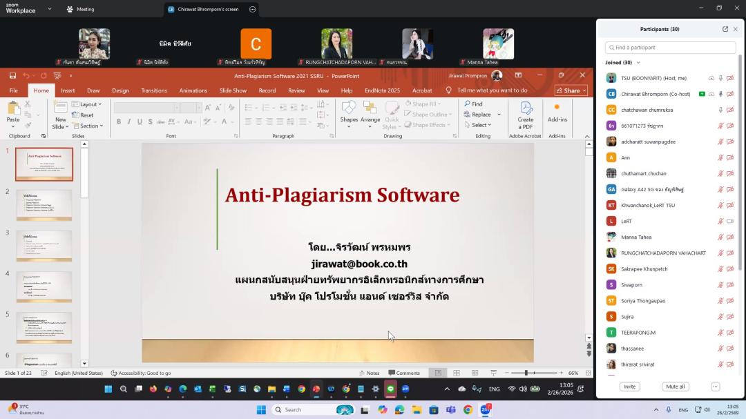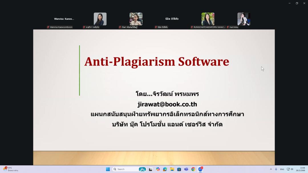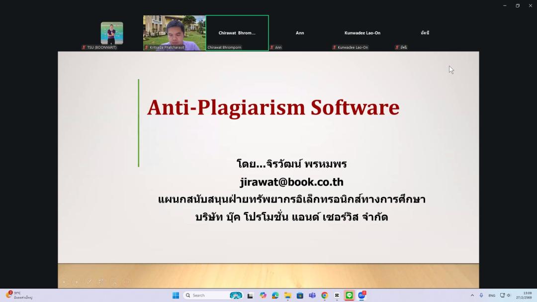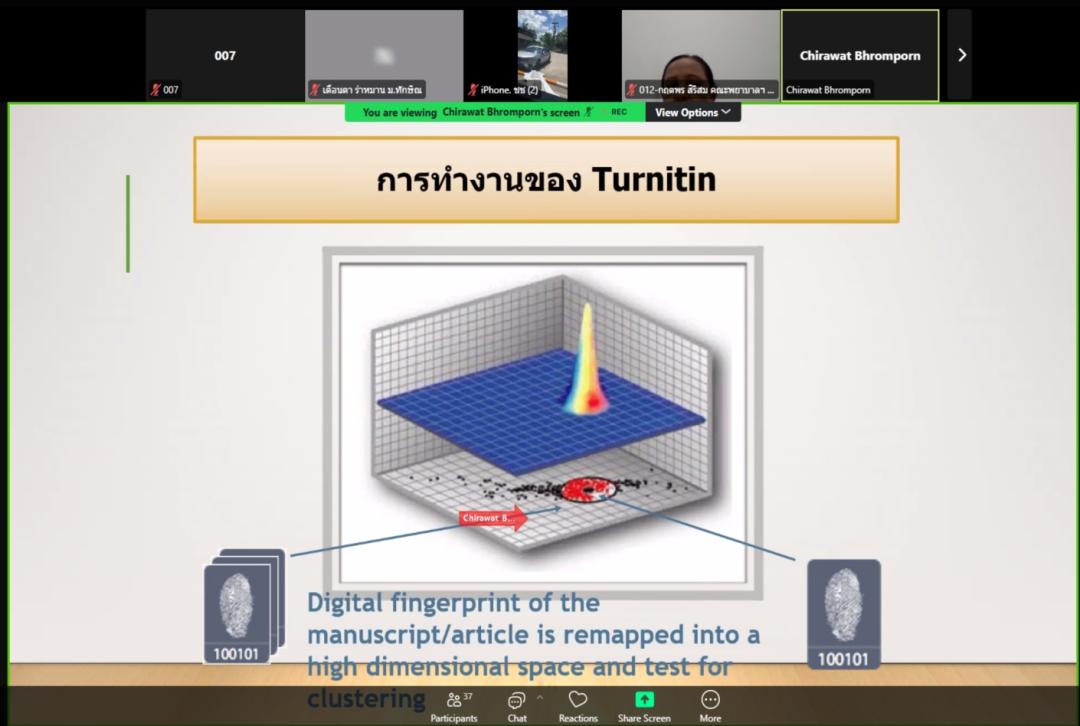 สถาบันทรัพยากรการเรียนรู้และเทคโนโลยีดิจิทัล จัดการอบรมการใช้งาน Turnitin ผ่านระบบ Zoom โดยได้รับเกียรติจากคุณจิรวัฒน์ พรหมพร บริษัท บริษัท บุ๊ค โปรโมชั่น แอนด์เซอร์วิส จำกัด เป็นวิทยากรถ่ายทอดความรู้เกี่ยวกับการตรวจสอบความซ้ำซ้อนของเอกสาร การอ่านค่ารายงานผล และแนวทางการใช้เครื่องมืออย่างถูกต้อง
