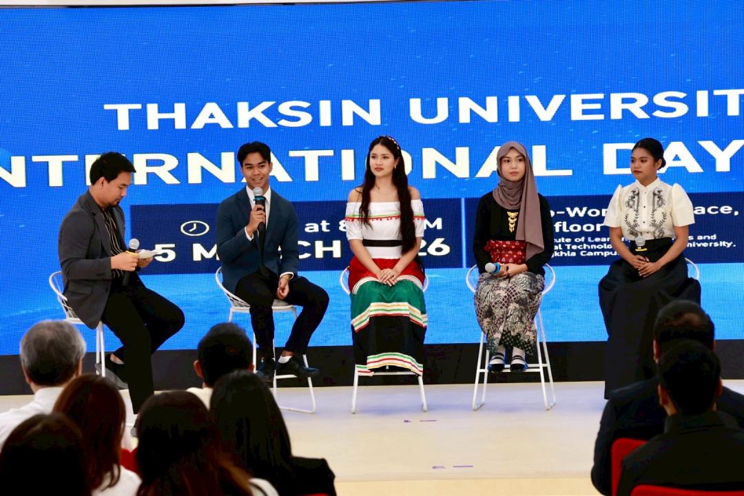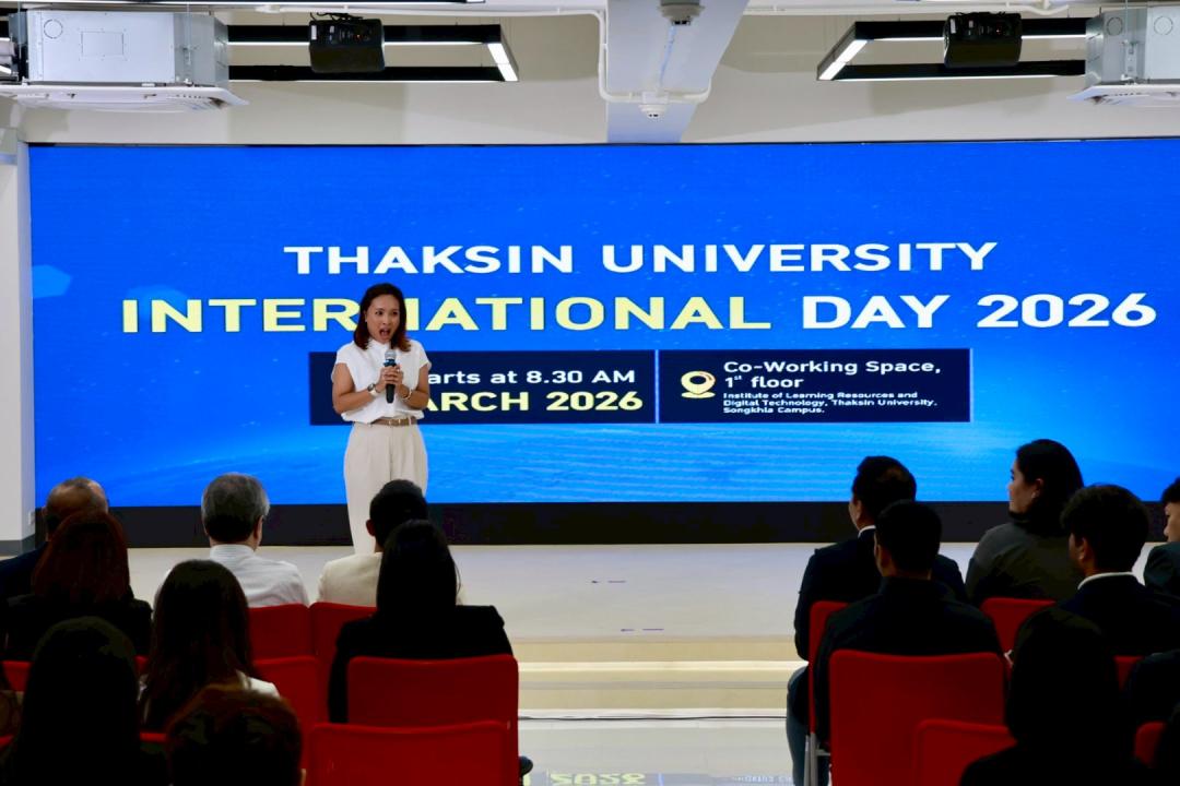 มหาวิทยาลัยทักษิณ จัดกิจกรรม TSU International Day 2026 เมื่อวันที่ 5 มีนาคม 2569 ณ Co-Working Space ชั้น 1 อาคารหอสมุด สถาบันทรัพยากรการเรียนรู้และเทคโนโลยีดิจิทัล วิทยาเขตสงขลา เพื่อเปิดพื้นที่แลกเปลี่ยนประสบการณ์ด้านนานาชาติ และส่งเสริมการพัฒนามหาวิทยาลัยสู่ความเป็นสากล พร้อมเปิดตัว TIS (TSU International Services) แพลตฟอร์มบริการด้านนานาชาติของมหาวิทยาลัยทักษิณอย่างเป็นทางการ ซึ่งพัฒนาขึ้นจากความร่วมมือระหว่างวิทยาลัยนานาชาติและทีมพัฒนาระบบของสถาบันทรัพยากรการเรียนรู้และเทคโนโลยีดิจิทัล โดยมีเป้าหมายเพื่อเป็นศูนย์กลางการให้บริการข้อมูล การประสานงาน และการสนับสนุนกิจกรรมด้านนานาชาติของมหาวิทยาลัย ผ่านระบบดิจิทัลที่ทันสมัยและเข้าถึงได้สะดวก
