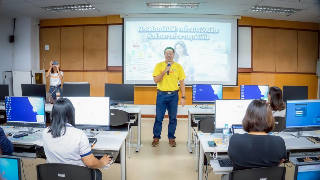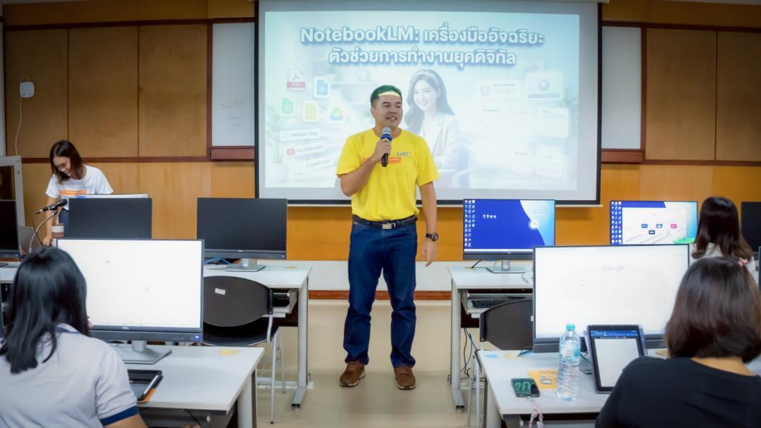 การอบรมครั้งนี้มุ่งเน้นการถ่ายทอดองค์ความรู้ควบคู่กับการฝึกปฏิบัติการใช้งาน NotebookLM ซึ่งเป็นเครื่องมือ AI ที่ช่วยสรุป วิเคราะห์ และจัดการข้อมูลได้อย่างเป็นระบบ โดยมีเป้าหมายเพื่อให้บุคลากรมีความรู้ความเข้าใจในการใช้งาน สามารถประยุกต์ใช้เทคโนโลยี AI เพื่อเพิ่มประสิทธิภาพงานประจำ และนำไปปรับใช้ในการบริหารจัดการข้อมูลและการจัดทำเอกสารภายในหน่วยงานได้อย่างเหมาะสม