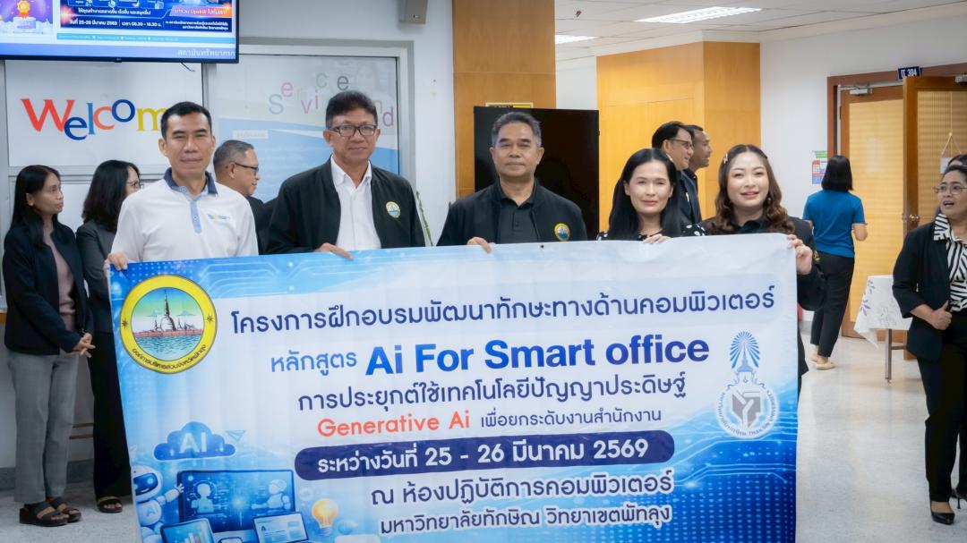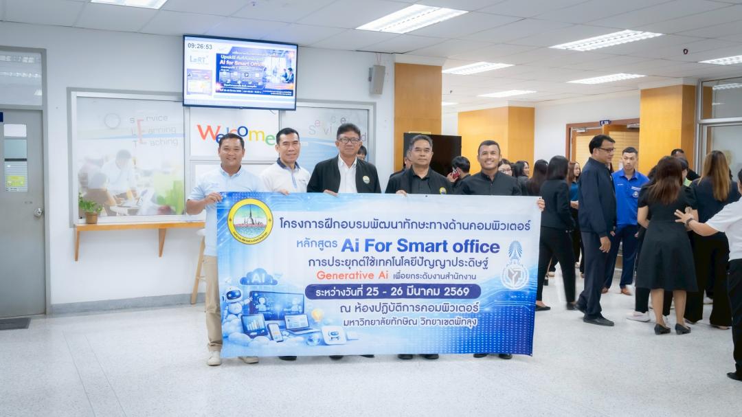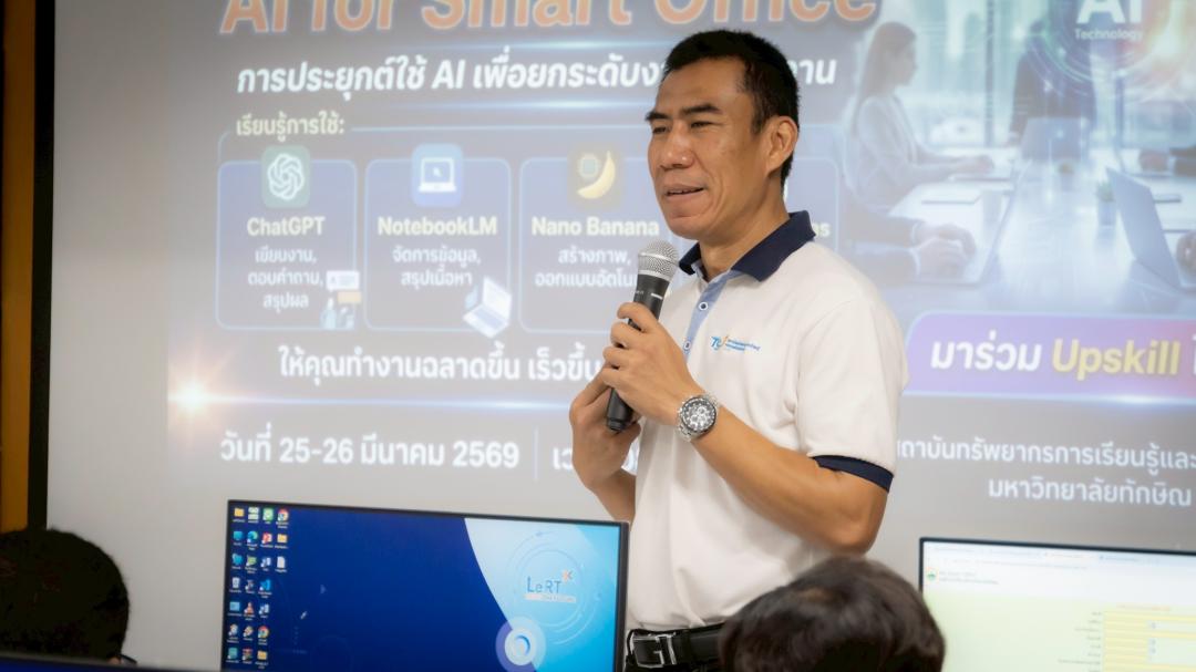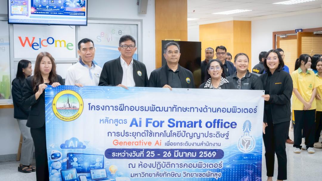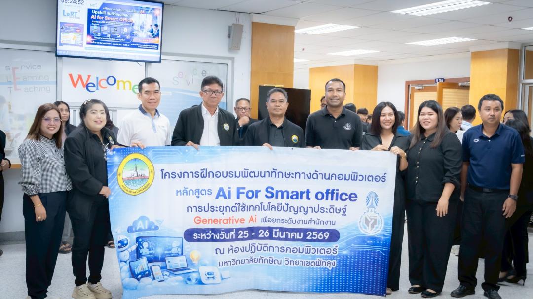 สถาบันทรัพยากรการเรียนรู้และเทคโนโลยีดิจิทัล (LeRT) มหาวิทยาลัยทักษิณ วิทยาเขตพัทลุง ร่วมกับ องค์การบริหารส่วนจังหวัดพัทลุง จัดโครงการอบรมเชิงปฏิบัติการหลักสูตร “AI for Smart Office : การประยุกต์ใช้ AI เพื่อยกระดับงานสำนักงาน” ระหว่างวันที่ 25 - 26 มีนาคม 2569 ณ ห้อง IT304 โดยมี นายกฤษฎา คงหนู นักวิชาการคอมพิวเตอร์ บุคลากรของสถาบัน LeRT เป็นวิทยากรผู้เชี่ยวชาญในการถ่ายทอดความรู้และนำฝึกปฏิบัติ เพื่อพัฒนาศักยภาพบุคลากรในพื้นที่ให้พร้อมก้าวสู่การทำงานยุคดิจิทัลอย่างมีประสิทธิภาพ